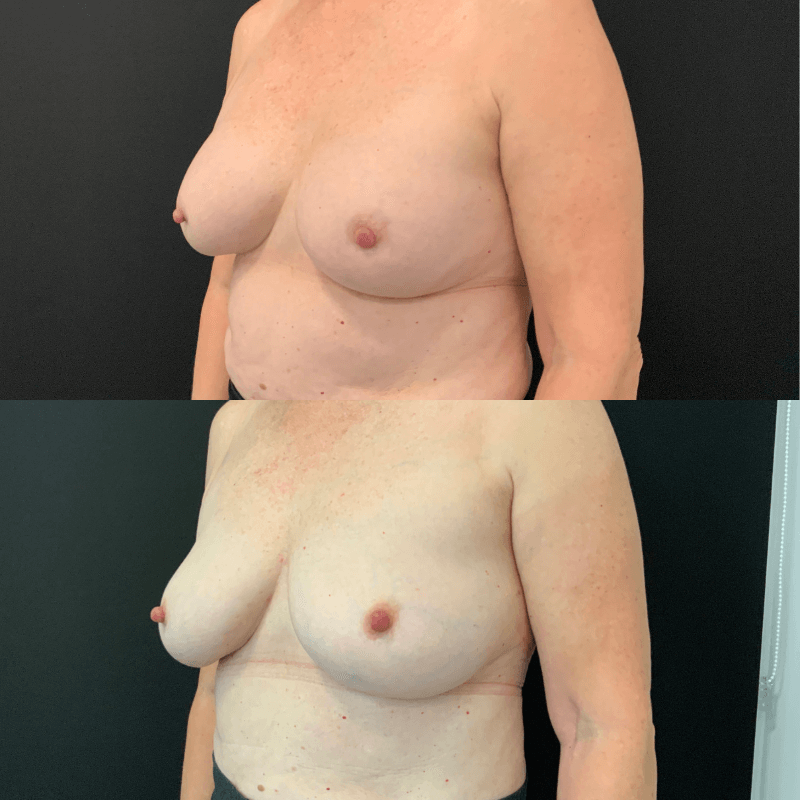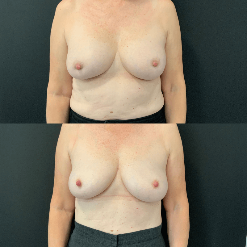 - Combine with a breast lift for enhanced shape: If there is sagging or loss of fullness, implant replacement can be combined with a breast uplift (mastopexy) to restore a rejuvenated and lifted breast shape.